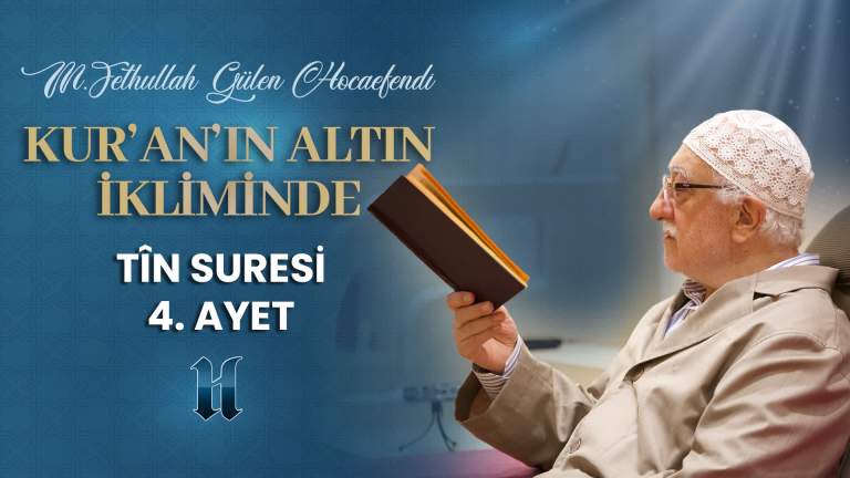 Muhterem Fethullah Gülen Hocaefendi bu videoda Tîn Suresi 4. ayet-i kerimesinin tefsirini yapıyor: لَقَدْ خَلَقْنَا الْاِنْسَانَ